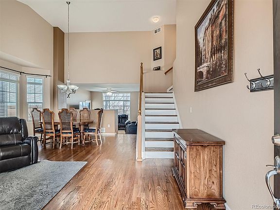 Come see this perfect home that is ideal for spending time with loved ones. The family room features a cozy gas fireplace and is right off the spacious kitchen with stainless steel appliances, granite tile counters, tile backsplash, pantry and oak hardwood flooring. The breakfast area is quite large and offers great views of the morning sun and open space behind the house. The formal living and dining room easily flow off the family room. The primary suite is a luxurious retreat, complete with a three-sided gas fireplace, oak hardwood flooring, and an expansive lounge/sitting area that would make an ideal office space. The attached 5-piece primary bath and walk-in closet complete the area. There are two additional bedrooms and a full bath on the same level. The garden-level basement is filled with natural light from three large windows, making it easy to finish. The back deck and privacy-fenced backyard with brand new sod and sprinklers are perfect for outdoor entertaining. There is also a large porch off the front of the house as well. The home also includes newer 7.8 kw rooftop solar panels that are owned. The water heater is new and HVAC is only a few years old. Murphy Creek offers plenty of amenities for its residents including: golf, tennis, swimming, parks, trails, and playgrounds. Assumable VA loan at 2.625% makes this home an even better deal!