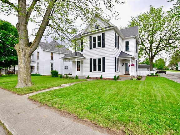 Beautiful 19th Century home sitting on a corner lot includes 4 bedrooms, 2 full baths. Home features 10' foot ceilings, the original woodwork, french doors leading into the living room where you find a cozy wood burning fireplace. Entire home has been freshly painted, new porcelain tile floors in the downstairs bath, kitchen and utility rooms. Kitchen has been upgraded and the stainless steel appliance remain with home. There are two stairways, one at the front and back of the home. Newer replacement windows were custom made to fit the existing openings to maintain the integrity of the home. Fully fenced backyard, large wood deck. Two car detached garage and attached storage shed. Wiring is up to code and new plumbing. Home Warranty incl.