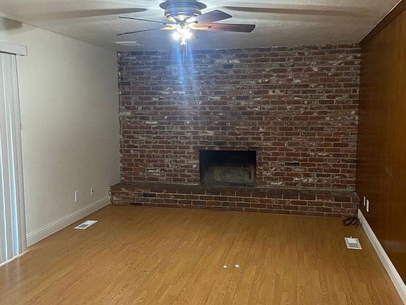 Charming single-story home with spacious living area, brick fireplace, open kitchen, washer/dryer hookups, attached garage, and a large yard.