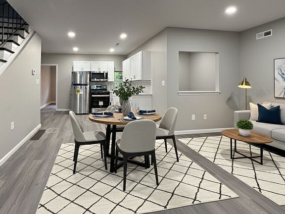 Split-level living arrangementSleek kitchenOpen-concept first floorFully updated bathModern backsplashGenerously sized bedroomsStainless steel appliances