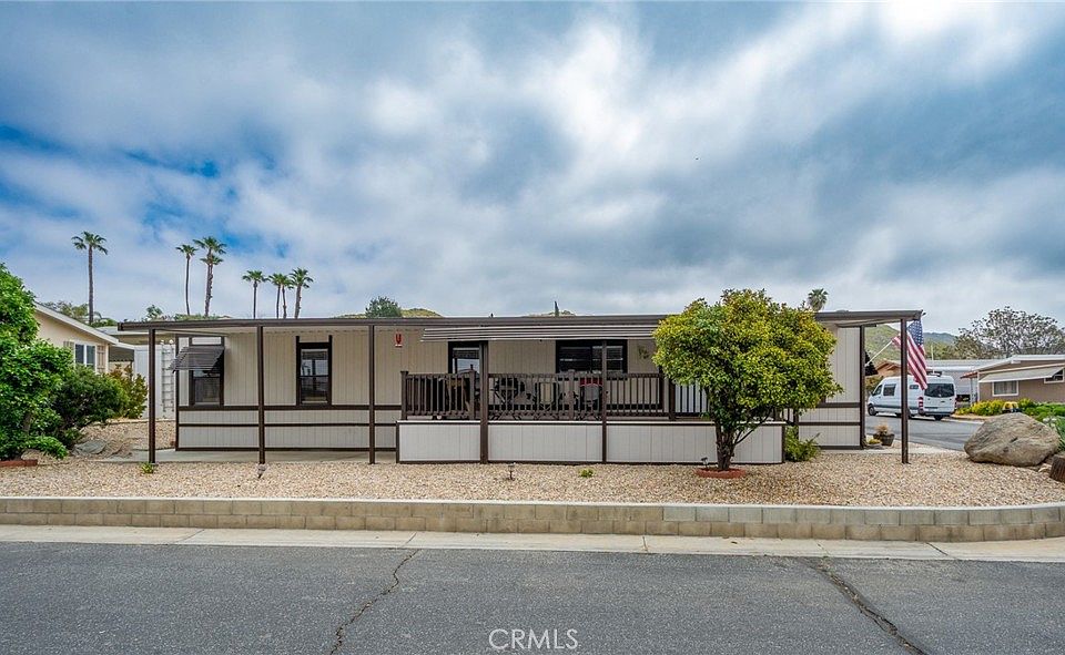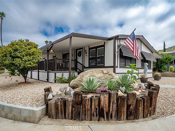 You won't find a nicer location than this pristine home in Saddleback Mobile Home Park. Recent park improvements include attractive landscaping, a new pool and spa, playground, BB ball half court, horseshoe pits and bbq area with picnic tables. You and your family or guests can enjoy resort style facilities without leaving your neighborhood. Exceptional curb appeal and water wise landscaping on this home situated on a corner lot save you yard work. Located near Domenigoni Pkwy provides fast access for commuters.