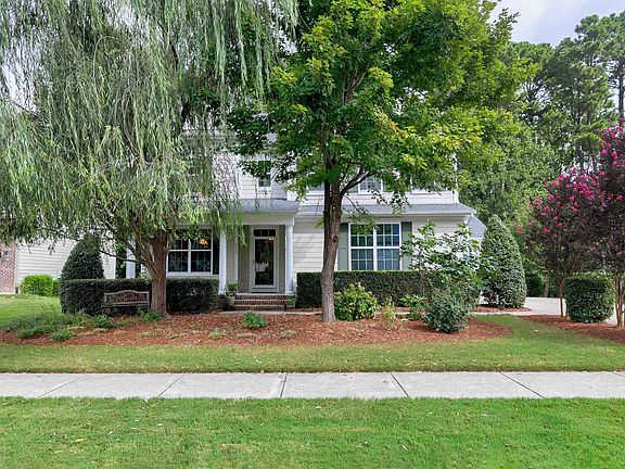 Beautiful 5 BR + Bonus w/ 3-car garage in desirable Salem Village- walkable to downtown APEX! It is the perfect blend of stylish, UPDATED features & good design- all set in a private, lushly landscaped lot! Main level features open plan w/ hardwoods throughout, custom trim, & arched doorways. The well-lit kitchen is a chef's dream w/ large island, newer Bosch appliances, updated fixtures and lighting, wine fridge, subway tile & tons of cabinets w/ stylish, new hardware. Plenty of room for casual meals in the kitchen or entertain in elegant DR. Bright family room w gorgeous built-ins and gas FP opens to Screened porch. 1st floor Flex space could be office or 5th BR. Adjacent 1/2BA with space to convert to full. Retreat & relax in HUGE Primary bedroom w sitting area, dual WIC's and a spa-like master bath. Upstairs 3 additional good-sized BR's, Bonus loft and hall bath w double vanity. Enjoy outdoor living in tranquil, fenced backyard oasis w/ patio, pergola & firepit with view of wooded, protected GREENSPACE! Salem Village Neighborhood features a resort-style pool, clubhouse, & playground! New roof (2023)
