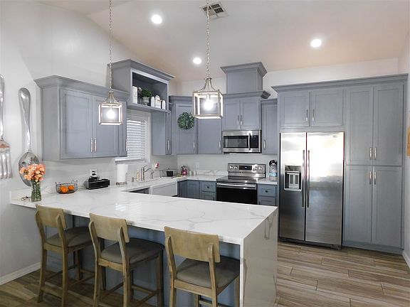 Beautiful just like new home. Futures portico grand entry, great room with vaulted ceilings, tile flooring throughout except carpeted bedrooms, walking closet in master bedroom, large kitchen breakfast bar, quartz counter top in kitchen and bathrooms, stainless steel appliances, french door to covered patio.