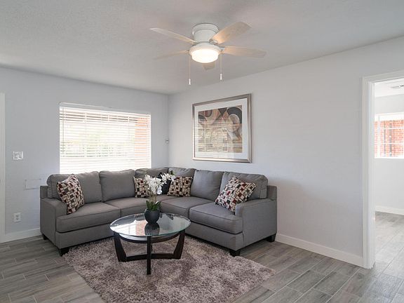 Beautiful, charming red brick home. Three bedrooms and 1.75 baths. All fresh interior and exterior paint. New roof. New Shaker cabinets, new recessed lighting, new backsplash, new stainless steel kitchen appliances, new upgraded granite slab counter tops and breakfast bar. New tile and new carpet. New ceiling fans and light fixtures. New bathroom cabinets and counter tops. En suite master bath. Double vanity in hall bath. Lots of natural light. Laundry room. Large backyard with covered patio. Vegetable and herb garden. Great, quiet area with pride of ownership. Convenient to shopping, freeways, Palo Verde golf course and light rail. House is a must see!