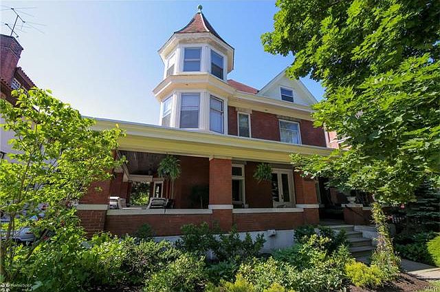 Imagine a cocktail party or intimate alfresco dinner on the huge wraparound terrazzo covered porch. Enter the home through the double leaded glass doors to the parlor, with it's grand staircase, natural woodwork, and stained glass windows. Pass through the wood columns to the large living room w/ it's original hardwood floors. Grand Mahogany pocket doors open to the formal dining room with it's coffer ceiling. The kitchen was updated several years ago to stay within period style of the original house, w/ custom cabinetry, black granite, and some original cabinetry. A second covered patio is off of the kitchen for your morning coffee as well as a 1/2 bath. From the kitchen, you can reach the second and third floors via the rear staircase, with their endless number of rooms. Some bedrooms have been transformed to laundry & bathrooms, but the possibilities are endless. One 3rd flr BR even has it's own kitchenette! BACK ON THE MARKET due to buyer's financing not coming through.