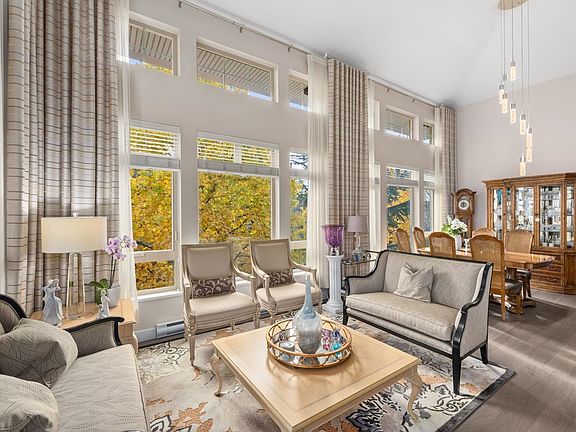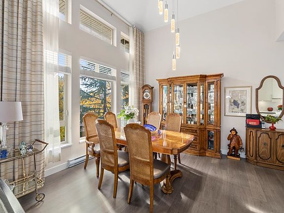 Adagio I - Original owners that were one of the first to buy in this building, offering the top floor corner unit that faces South and East. A lovely Outlook of trees and the courtyard plus winter time offers a view of Mt Baker. Many luxury upgrades have been done by the owner thru the developer- 2 Sub Zero freezer drawers in the Island, large Kitchen Aid fridge with ice and water, Induction cooktop, solid surface counter tops, Designer dining room light fixture, 12 ' plus high ceilings in Lvg/Din area, over sized covered outdoor balcony, the den features built in organizers, a Murphy bed in 2nd bdrm, Ensuite has an oversized shower. 2 prime SbyS parking spots close to the Elevator/ 2 dogs allowed/ amenities of a fitness centre and lounge. A premium building in a prime location.
