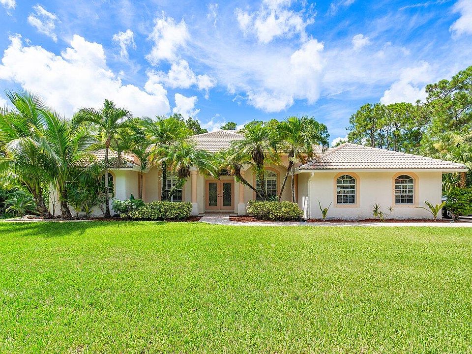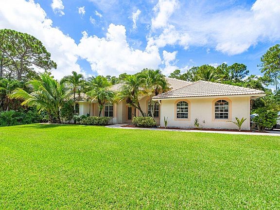 If your looking for your own private estate look no further than this stunning Acreage home. This amazing home sits on a beautiful manicured 1.15 acre lot with full irrigation system and additional hose bibs and power outlets throughout the landscape.This amazing home also features a massive 50 x 30 screened pool patio with magnificent pool and spa ideal for every party. As you make your way in side the 2500 sq foot home has a very open feel with all the windows and tall ceilings. The formal layout features a spacious living and family room along with great dinning room ideal for entertaining. The kitchen has recently been remodeled and features top of the line stainless appliances and granite tops. The home also has a central vac and stand alone home generator. This house is a must see