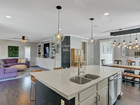 Enjoy views of North Table Mountain in this beautiful, newer construction, located in the coveted community of Gardens at Table Mountain. 4 bedrooms, 3 bathrooms, 3 car garage. Custom woodwork throughout, professionally landscaped backyard with covered patio and pergola, upgraded custom lighting and window treatments, security system with cameras in front and back, shows like a model home! Enjoy the private neighborhood park, trails, green space, playground, and pool just half way down the block! Hike or bike to Table Mountain trail heads. Minutes to I-70, top rated schools, shopping, and dining! Don't Miss the virtual tour!