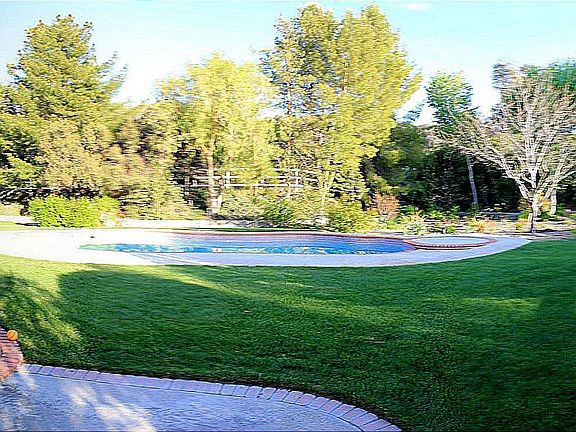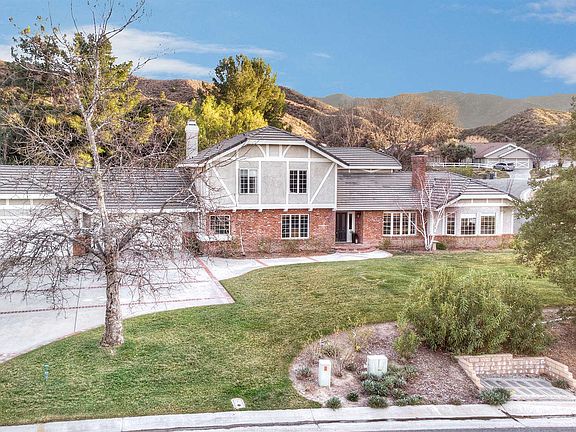 Luxurious Sand Canyon 5+4+4 Pool Home on Almost 1 Acre, Two BDS & BATHS DWN (1 Currently a Office), PAID Solar, & No Mello-Roos! This COMPLETELY RENOVATED home features stunning hardwood floors T/O, high ceilings, whole house fan, LED lights T/O, dual pane windows, copper plumbing, modern grey paint tones T/O ; LOTS MORE! Upon entering find dbl doors entering into the 5th BD, the open & inviting formal living room w/dual sided fireplace which leads to the cozy family room w/a built in entertainment center, & beamed ceilings. Stunning formal dining room w/ built in hutch & french doors leading to the unbelievable backyard. DREAMY center island cook's kitchen w/marble counters, Thermador appliances, secondary sink & small dishwasher in the GINORMOUS island, walk in pantry & breakfast nook w/built in seating & storage! OUT OF THIS WORLD laundry room w/tons of storage, utility sink, & built in laundry chute from upstairs bathroom! Head upstairs to find the master suite that feels like you are at a Bed & Breakfast! Beautiful brick fireplace w/built ins, walk in closet, dual his/her upgraded vanity, walk in glass enclosed shower w/custom tile & bench, separate custom bathtub, shiplap walls & balcony overlooking the backyard. The exterior features an EXTRA large driveway, side gate that could be potential RV accessl, HUGE 4 car extra deep garage (perfect for lots of toys) heated pool, spa & safety gate, in ground trampoline, tons of grassy area, & lots more!
