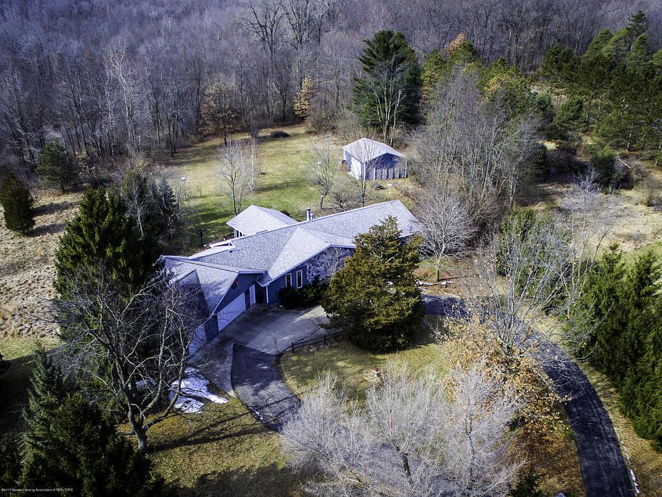 A private 5 acres with access to thousands more. This property backs up to Rose Lake State Land. 3 small lakes and thousands of wooded acres await the new owners of this 2,140 sq.ft. 3 bedroom 2 1/2 bath house. All of this plus a 3 car attached garage and a large pole building.