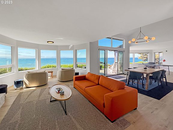Spectacular Pacific Ocean frontage with private access to an incredible beach to take long walks, explore tide pools, beach comb or relax and enjoy the beauty of nature, dramatic bluff line and sea stacks of the Oregon Coast. From the moment you walk through the front door and see walls of windows, you will fall in love with the South facing views of the coastline and the Crescent City Point St George lighthouse. Living room includes a new Lopi gas fireplace insert and octagon sitting area to take in the amazing views. The dining room boasts high ceilings, modern lighting & double sliding glass door to incorporate indoor/outdoor living. Kitchen includes a new Delta sink & faucet, new Fisher Paykell cooktop, new refrigerator & coffee bar. Large downstairs bathroom has been totally remodeled & is across the hall from the 2nd bedroom. Upstairs is a large primary bedroom/bathroom and a 3rd bedroom all with stunning views from multiple windows. There is nothing quite like waking up & gazing out at the gorgeous coastline to start your day. Recent improvements include interior & exterior paint, new Marvin hurricane rated dual pane UV windows, On-Demand high capacity gas water heater, Wyze security cameras, alarm system and irrigation system. Be mesmerized by the ever-changing colors of the ocean/sky, watch the birds, whales, seals and boats from inside or on deck outside. One of the few oceanfront homes currently available in the Brookings area. Be sure to watch the virtual tour & drone video. #SouthCoastOregon #BrookingsOregon #ChetcoRiver