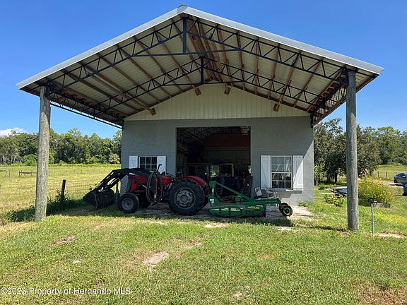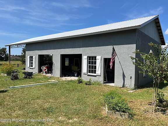 Don't miss out on this amazing opportunity to own this 4.8 acre pasture land zoned for animals! Fully fenced and cross fenced with multiple paddocks making it perfect for goats, horses, and other livestock. The 4 bedroom 3 full bathroom manufactured home offers a sprawling spilt floor plan. The open kitchen features and abundance of cabinets for plenty of storage, new stainless steel appliances, and center prep island. The bonus living room is a great place for entertaining guests and offers a nice view through the sliding glass doors. Outside features a recently built large 30x50 concrete block shop with endless possibilities including car/truck lifts, barn stalls, workshop and more. In addition its has a 20' awning for additional coverage making it perfect for storing your boat, R.V., and toys!! If that's not enough storage for you, there is also an additional detached 10x14 utility shed. This is a great property in a very desirable area with endless opportunities. Located 10 minutes from the Suncoast Parkway making the commute to Tampa or Citrus County a breeze! Minutes away from Highway 50 that offers endless dining and shopping choices, Hospitals, and recreational activities. Don't miss this one! Call to schedule your showing today!