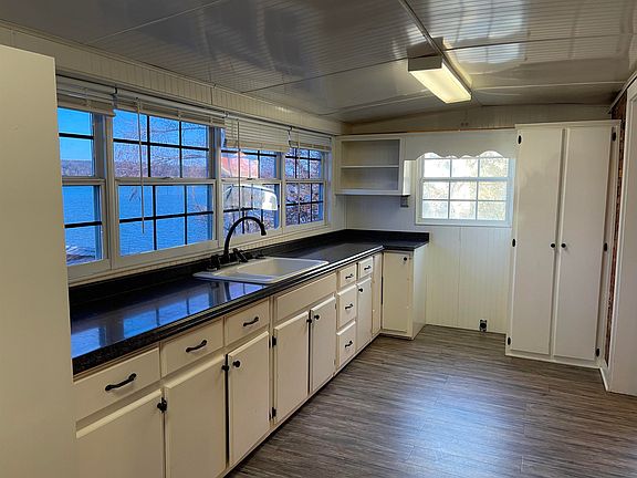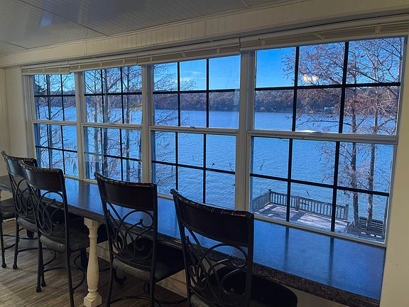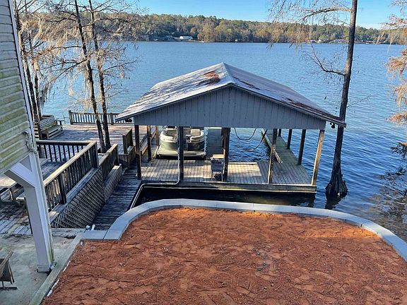 THE PERFECT lake house. 100' of waterfront that is easily accessible by anyone with the decks going down to the lake and boat house. Gorgeous views of the lake can be seen from the dining bar and kitchen. Main level has 2 rooms that can be used as bedrooms or anyway that is needed. Downstairs has one large open room with fireplace and gas logs. This room opens out to the covered patio and spacious deck area. All of the house, except for the kitchen area, has been recently renovated with new electrical wiring, plumbing, sheetrock and flooring, new bathroom and doors (both interior and exterior). Boathouse has a boat lift. Seller recently redid a portion of the seawall.