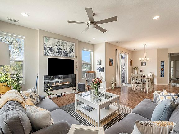 Introducing a rare and exquisite end unit townhome located in a stunning community. This exceptional property boasts a serene setting, overlooking a delightful bike/walking trail. The ranch-style layout ensures convenient living. With its idyllic location and thoughtful design, this property offers a lifestyle of comfort and inviting ambiance. You will immediately notice the high-end laminate flooring that graces the main living area, lending both elegance and durability to the space. The cozy electric fireplace is a charming addition and is included with the home. Ceiling fans further enhance the comfort of the home. The kitchen is seamlessly connected to the dining and living area, allowing for effortless interaction and entertaining. A center island provides an ideal gathering spot for friends and family, making it perfect for casual dining. The kitchen boasts stainless steel appliances, pantry for ample storage, gas range for culinary enthusiasts, and quartz countertops that radiate sophistication.