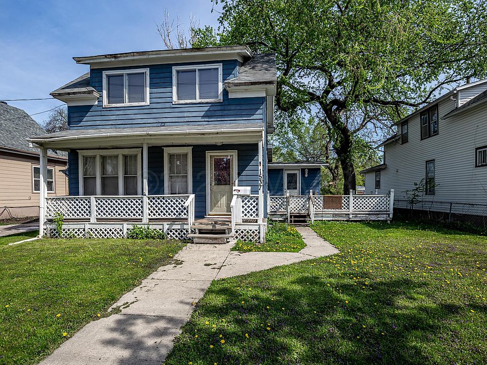 Perfect starter home. Great price point! Main floor has a large living room with hardwood floors, half bathroom, kitchen with newer appliances and separate dining room. Upper level has 2 bedrooms that have been renovated and full bathroom. Basement is unfinished with great storage and laundry included. 2 porches, fully fenced yard, playset. So much potential. Plenty of room to add a garage in back. Current space allows for parking. Two porches, Close to downtown amenities, NDSU and less than a block away from a park. See the potential!