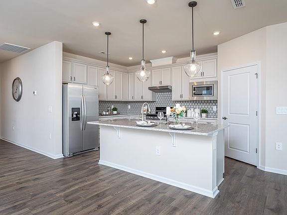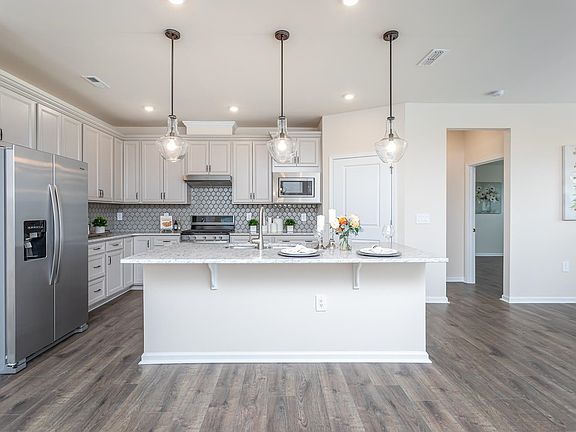 Immaculately maintained ranch home with 2 bed/2 bath/2 car garage in the heart of Fuquay-Varina! Kitchen features 5 burner gas range, sliding shelves, large island and panty open to living and dining area. Primary suite w/ tray ceiling, pocket door leading to large bath with double vanity, frameless walk in shower, and spacious walk in closet. Flex space has glass paned doors. Garage has extra space at the back for multiple uses. Cable, internet and lawn maintenance included. Clubhouse coming soon with indoor and outdoor pools! Active adult community with resort style amenities!