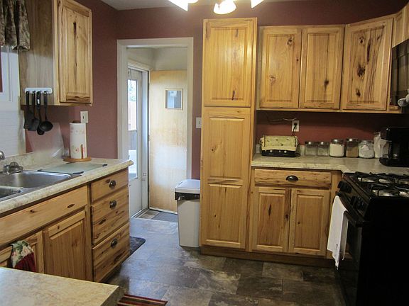 Well maintained home with front entry porch into living room with picture window. Large dining room. 2 bedrooms on the main level. Main floor laundry. Updated kitchen with hickory cabinets. Gas stove, refrigerator, microwave and dishwasher all stay including the washer and dryer. Main level has all new windows. Upper level has 2 attic rooms and 1/2 bath. Lots of storage. Basement is unfinished with furnace and new hot water heater. More storage and work area. Fenced in back yard. 2 car detached insulated garage built in 1987 and new large storage building with back double door entry. Garage has propane heater, work bench and shelving that will stay. Lots of parking to accommodate a motor home with alley access. This home has a lot to offer inside and out!