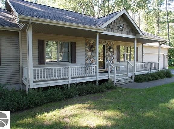Inviting, spacious stone accented front porch greets you as you walk up to this perfect ranch home. A tiled foyer opens to a great room concept dining room, kitchen, living room with a huge stone fireplace topped with a beam mantle. All main floor living offering a Master suite with double sinks, Walk-in closet and Walk-in linen closet and a main floor Laundry. You'll love the very functional kitchen w/snack bar and a dining area. A slider to the rear deck and patio is off the dining room. Below you is a large, ready to finish, lower level which is plumbed for a 3rd bath and also has an egress window at one end. Irrigated, one acre yard anchored by a heated, insulated and drywalled 20x30 workshop. This property also backs up to state land. Kids can walk the 1/4 mile to Westwoods elementary!! All measurements, dues and/or fees are approx. and should be verified by purchaser.