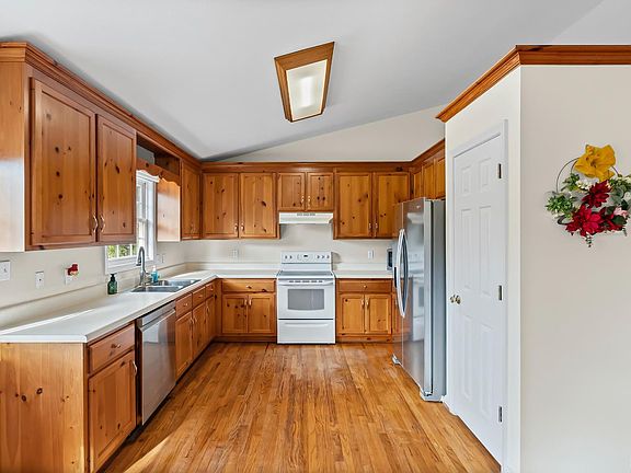 Discover the ideal ranch-style home for your family! This charming 3-bedroom, 2-bath residence is perfectly situated near Rustburg and just a short drive from Lynchburg. A welcoming, fully covered front porch invites you inside, where you'll find an open layout featuring vaulted ceilings that enhance the spacious living room and kitchen, complete with an eat-in dining area. Notable wooden custom kitchen cabinets & new refrigerator! The primary bedroom boasts double closets, including a walk-in, and an ensuite bathroom for added convenience. Two additional generously sized bedrooms share another full bathroom, ensuring ample space for everyone. Storage is abundant, with a kitchen pantry, a storage closet, and a large coat closet. The full unfinished basement, w/ rough in pluming, offers potential for future expansion or serves as excellent storage. Set on 2 picturesque acres, the property features beautifully laid front and back yards, perfect for outdoor activities and relaxation.