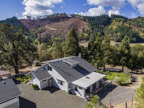 Gorgeous private gated property on 44 acres! Remodeled kitchen with granite counter tops. Main level over sized master retreat and bathroom. Enjoy the outdoors year around in the comfort of the enclosed sunroom overlooking amazing views and manicured lawn. Detached 2 car garage, rv parking, fenced and cross fenced pastures for animals. Fruit trees, fenced garden, gazebo, fire pit, trails, 2 seasonal creeks, wooded setting.