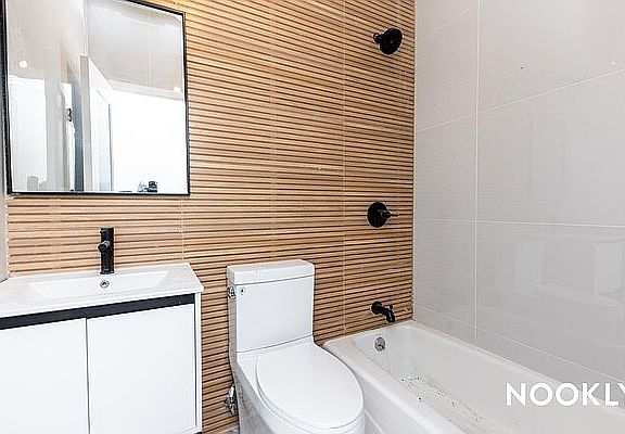 Brand New 2 bed 1.5 bath with in unit washer and dryer, brand new appliances including a built-in microwave, dishwasher, spacious closets, balcony, private roof deck, and plenty of natural light. Close to A/C trains. Central A/C Washer dryer installed Laundry in building Outdoor Space Stainless Steel Appliances Dishwasher Built in microwave Stone countertops Granite countertops Balcony Private roof deck