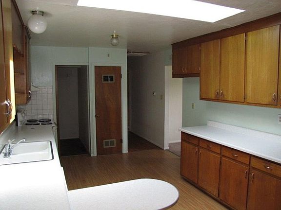 This rancher nicely located on a corner lot has a beautiful stucco exterior with a brick fireplace chimney. Great picture window in the front. There is a wood burning fireplace in the front room. 2 walk in closets, walkouts in the dining to the side yard and in the family room to the back yard. The kitchen has lots of cabinet space, tiled back splash and skylight. Fenced back yard. This home needs some work and the previous tenants reported water intrusion in the detached garage as well as the garage door not working.