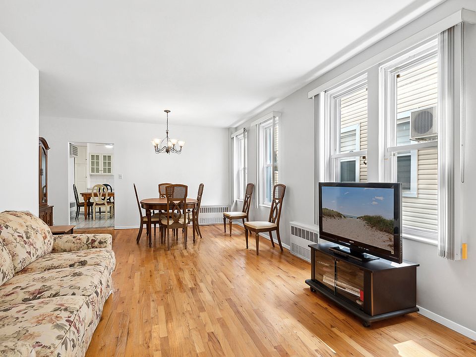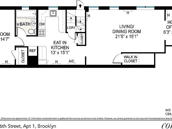 **Huge floor-through townhouse 1br with triple-exposures! Shared Patio & Laundry** **New exclusive Huge full-floor one-bedroom that spans the entire length of a 16 by 56 ft townhome Ample space for both large living room furniture and a full dining room set in the living room Eat-in windowed kitchen with dishwasher & microwave, and ample room for a 4-person breakfast table Queen size bedroom Additional entry room or home office Full bath with tub Wood floors throughout Pets case by case Street parking Beautiful tree-lined street, just a few blocks north of the Kings Avenue Q train as well as shopping & dining on Kings Hwy