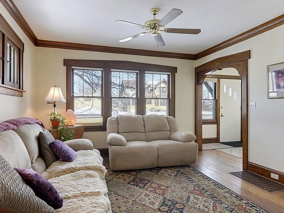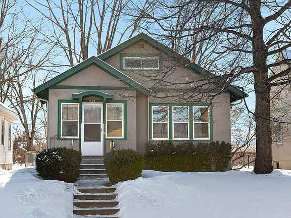 Lovely 2 bedroom, 1 bath house, just blocks from the lakes, the park and the creek! Enjoy gorgeous original woodwork and fresh paint throughout the main level. The main floor offers two spacious bedrooms, a cute bathroom, formal dining room, living room, front porch and spacious kitchen. Upstairs is a finished bonus space and has been completely air-sealed and insulated for efficiency and comfort. The lower level is unfinished but the ceilings are high and additional square footage could be easily added. The backyard has been professionally landscaped with a peaceful patio area, privacy fencing, and raised beds. Asphalt driveway in back provides additional parking for the single stall garage. Come and see this sunny and sweet South Minneapolis charmer today!