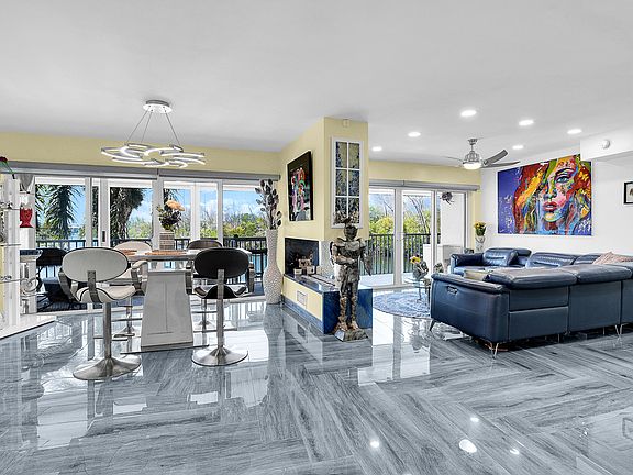 The finest three-bedroom waterfront residence in Hillsboro Cove, offering unparalleled views of the river & Capone Island. Meticulously remodeled, this condo features quartzite counters in the chef's kitchen, top-of-the-line KitchenAid appliances, & LED high hat lighting. custom translucent barn doors lead into each bedroom. The master bath features a bidet with multi heads in the oversized shower. The guest bath boasts a luxurious soaking tub overlooking the river with a view of the mega yachts as they go by. A Dimplex custom-built light & steam fireplace wrapped in quartzite adds a warm elegance. Just a few minutes' walk to local dining & Deerfield Beach. Boca Mizner 5-minute drive. This residence epitomizes luxury living. Boat slips, when available. CONCRETE PAID IN FUL