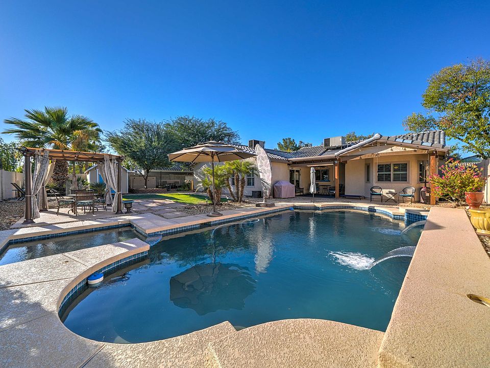 Welcome to your home in Strawberry Point! Upon entering, you'll be greeted by vaulted ceilings, a spacious living room, and a secondary living room with an abundance of space for entertaining. The kitchen features stainless steel appliances and a view of the lush resort style backyard with natural shade and room to run! Step out back and enjoy the sparkling Pebble Sheen pool and then dry off under the covered patio or gazebo. Too cold for a swim? Warm up and relax in the heated spa! This 3 bedroom, split floor-plan home is conveniently located near local groceries and coffee shops and only a short drive from both the US-60 and 202 Loop Highways. Schedule your appointment to call this lovely place home!