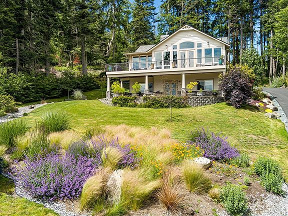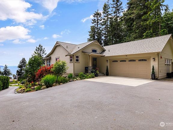 Well appointed custom view home is waiting for you to make it your own. Upon entering, the wall of windows welcomes with amazing views from inside, or step out the french doors to take in the views of Saratoga Passage and beyond from the front deck! Gourmet kitchen with quartz counters and custom cabinets, ample dining area, and relaxing living room with gas fireplace provide the perfect entertaining space. You'll love the main level primary suite with luxurious bathroom and private sun room with deck access. Lower level has full bath, den/office, and 2 bedrooms, one with door to full lower patio and fire pit. Set on over an acre of land with beautiful landscaping and too many features to list, this home has it all. Come and see!
