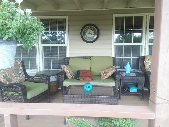 Covered front porch 10x66. Back deck 12x30 has a built-in hot tub. Both porch and deck are made out of composite material. Large mature front yard with automatic watering system. 6ft tall sandstone retaining wall in front of the house. In back, there is a cement slab large enough to park an RV. The property has two septic tanks and well. The house has natural gas and city water. Must see to appreciate.
