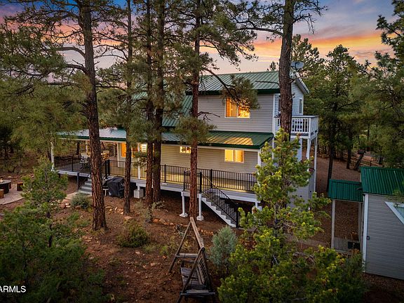 Step outside to enjoy the wraparound covered deck complete with a swing and outdoor gas fire pit—ideal for relaxing or entertaining. A private gate and trail provide direct access into the National Forest, extending your adventure right from your own backyard. Extras include a 26x30 oversized garage with a heated and cooled 23x28 game room abovefully equipped with an arcade machine, shuffleboard, and a comfortable seating area. You'll also find a 12x12 guest casita, a lighted shed, and easy year-round access on paved, county-maintained roads.