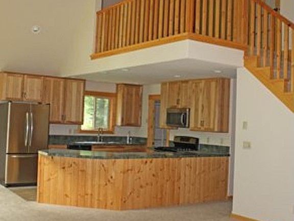 Beautiful cedar sided home on 3 treed acres. 3 Bedroom 2 Bath, great room with high vaulted ceiling and cozy wood stove recessed in fireplace with mantle. Kitchen features all stainless appliances, large pantry, hickory cabinetry and large peninsula, open to great room. Large master suite with garden tub and separate tiled shower, double vanity and walk-in closet. Large landing on loft area, great for office or library. Huge unfinished bonus room over garage. Trex decking on two sides. 2 car attached garage plus a 24 x 32 pole barn with power and concrete floor. Abundance of mature trees on property.