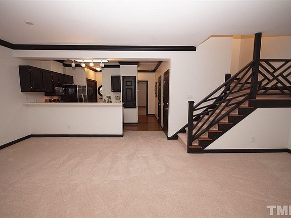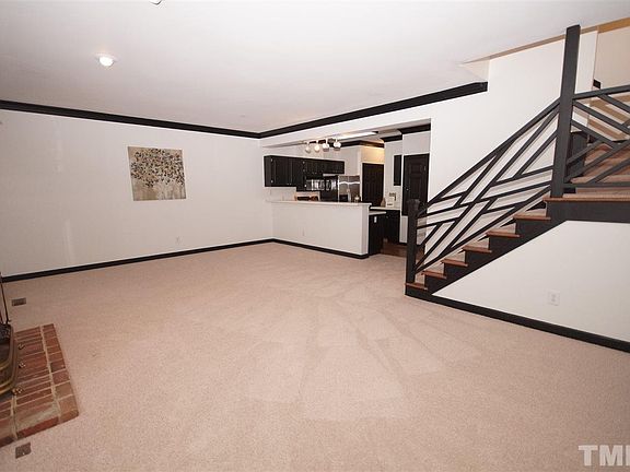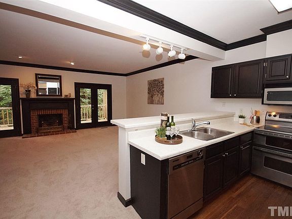 Move In Ready 4BR Townhome in spectacular location close to Crabtree & 440. Full Basement, 1st Flr Master plus huge 2nd Master in Bsmt w. full bath & fireplace! Brand new carpet, fresh paint, new fixtures. Updated Kitchen w. SS appliances & Hardwoods. Open Floor plan. Living Rm has masonry fireplace and 2 sets of double doors overlooking Deck/wooded backdrop. Must see...you won't believe your eyes!