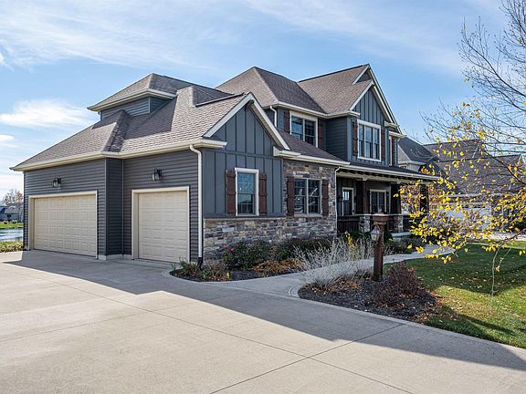 *OPEN HOUSE SUNDAY, 10/30 1-3 P.M.* This stately, waterfront, Timberlin custom-built home in Bridgewater has a wonderful location within Aboite Township. Sitting on a cul-de-sac with a lakeview the covered front porch is welcoming and functional. The craftsman style door opens to beautiful wood floors that flow throughout much of the main level. The hearty wainscot, trim, stone and reclaimed wood are finishing details that add to the style and presentation of this home. The open concept main level allows the living area to flow to the dining area and kitchen (stainless and granite with a large island, stylish subway tile, and a large walk-in pantry). The dining area, with water views, opens to the covered back patio via sliders. The placement of the home on this lot makes for perfect evenings on the back patio (and great room) without being baked by the afternoon & late evening sun. The living room has a gorgeous, arched-stone fireplace with a beautiful reclaimed wood surround and built-in shelving. A barn-style sliding door conceals the playroom that could also serve as a wonderful den or piano room and built-ins flank the window in this room. The main level laundry room is just past the mudroom with custom, built in lockers. The upper level has the master suite which offers a huge living area with tray ceilings, a niche for a desk or sitting area. Double doors open to the spa-like master bath with dual vanities, large tub and beautiful glass/tile walk-in shower. Upper level bedrooms all have great walk-in closets and window seats with storage. Bedroom #2 has en-suite facilities. Bedroom #3 has a long, trimmed window seat/storage and has a shared full bath with bedroom #4. The daylight lower level offers a spacious recreational area, full bath and massive storage room.
