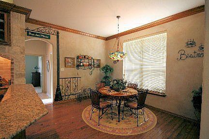 Beautiful Baillee Custom Home on 1 ac lot with refreshing Backyard Salt Water Pool and Heated Spa Extra decorative faux finish wall Murals in Kitchen, Dinette area, Formal Dining Room Ceiling, and Master Bathroom. The Kitchen has Brick and Austin Stone Cooktop Hutch, Stainless Steel Appliances and Granite Counter Tops. Master Bathroom oversized Shower with 2 Spray Heads, sep Vanities%2