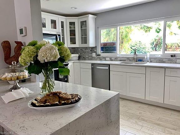 CLICK THE LINK TO VIEW a LUXURY VIDEO TOUR. Welcome to the most beautiful listing in Tahitian Shores, an affluent waterfront community with NO FEES. This is an excellent price to buy into this million dollar neighborhood. Absolutely stunning and totally remodeled retreat on a deep water sail boat access canal with NO BRIDGES. Enjoy a quick boat ride to beautiful beaches of Sanibel Island, Captiva & Fort Myers Beach. Here's a home to meet HIS AND HER NEEDS! CHARACTER meets structural excellence in this sanctuary. Not just your average "new kitchen" -- here you have QUARTZ countertops, a QUARTZ WATERFALL PENINSULA, all new gleaming appliances, real wood cabinets with a marble barback & backsplash. A 20x20 family room with cathedral ceilings and beautiful windows take you out to the oversize tiled lanai with a view of your backyard paradise. The upgrades extend throughout with bamboo floors in bedrooms, custom bathrooms with special order vanities & lighting. All the drainage has been reworked (new plumbing!) including an outdoor shower with custom stone work. Fascia completely redone. Hurricane impact windows. THERE'S NOTHING LIKE THIS ON THE MARKET for the price in this location.