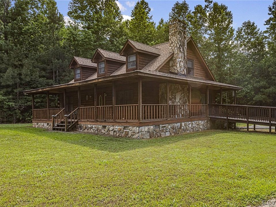 HUGE PRICE DROP!!!! This wonderful log home sits on a private three acres, but we are adding at minimum two more with a boundary line adjustment, so five acres total. It needs a little TLC on the remaining outbuilding but otherwise appears to be in good shape. This original owner's home has a very open and huge Great Room, Kitchen and Dining Area, so entertaining is very easy. Home has the Primary Bedroom with a private bath downstairs as well. 1/2 bath and incredible kitchen completes the first level. Upstairs are two large bedrooms and another full bath. Outside you have a paved driveway, Wrap Country Porch, and the outbuilding mentioned earlier. Easily this could be a Man Cave, She Shed, or just excellent storage. This home is currently on just over 3 acres, but we will be doing a boundary line adjustment to get to the five acres. Owners do own the adjacent farm, so it is an easy task. This is being done so the property encompasses the driveway and open area.