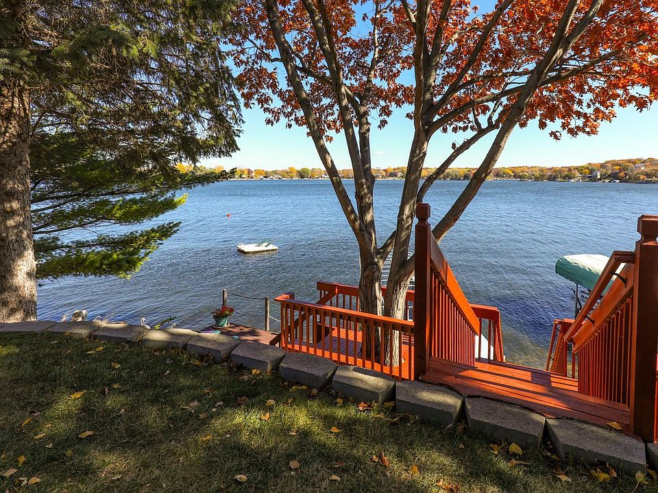 Cute split level home with 2 bedrooms, 2 bathrooms, 2 car insulated garage, 1374 square feet of living space, 50 feet of prime lakeshore with a gradual slope. East facing big water views with multiple decks and stunning sunrises. This cozy one owner home has been well taken care of and move in ready. Enjoy beautiful sunrises, walk to Lakefront park or downtown Prior Lake. Prime location on Lower Prior Lake. One year HSA Home warranty included in sale.