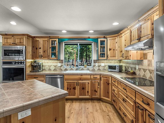 MOTIVATED SELLER. Beautiful craftsman oasis on paved road in Ponderosa Pines – in the heart of Central Oregon's outdoor adventure mecca! The home boasts a magnificent chef's kitchen with NEW stainless-steel appliances, island, and built-in pantry. Open floor plan with vaulted ceilings and exposed beams, knotty-pine cabinetry and fully fenced lush backyard with in-ground sprinklers, circular asphalt driveway, hot tub and RV hookup. There is high speed fiber-optic internet, a new heating and A/C system plus oversized 2-car garage, insulated shop, garden shed and plenty of paved parking. The neighborhood features well-maintained hiking, biking, and walking trails that lead to thousands of acres of open space and trails with access to lakes and incredible mountain views. The Homeowners Association plows roads in the winter and