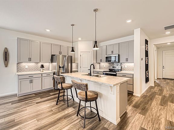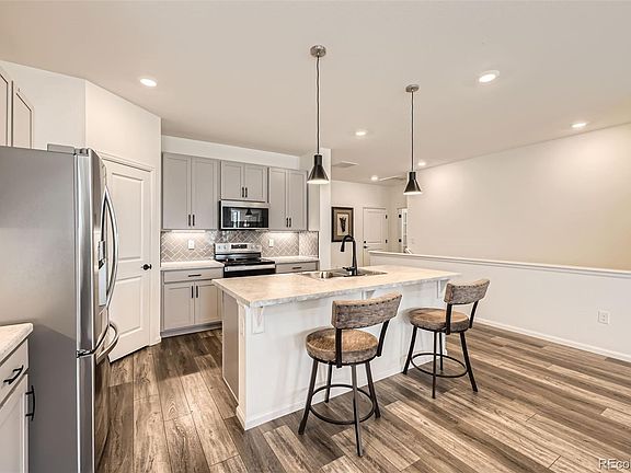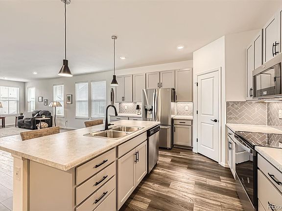 Welcome to 15376 Ivanhoe Ct. This spacious and open ranch style home is perfectly located on a West facing cul-de-sac homesite. This highly upgraded home is better than new with all the finishing touches already completed, saving you thousands. The gourmet kitchen boasts high end cabinets with slide out shelves, soft closed doors and under cabinet lighting. The stainless-steel appliances, tile backsplash, large pantry and sizable island complete the kitchen which opens seamlessly to the dining and family rooms. The large primary suite is complete with a luxurious ensuite bath with dual vanities and walk in closet providing ample space. Two additional bedrooms, a full bath, main floor laundry room and an office with double French doors round out the main level. As if this was not enough, the 1,979 sqft basement is finished with a substantial recreational room, private bedroom, full bath plus huge storage room. With easy access to the plumbing, a future basement wet bar could easily be added. The exterior is equally impressive with an attractive stone facade and a one-of-a-kind backyard featuring and extended covered back patio and over $40,000 invested into the low maintenance professional xeriscape yard – providing the perfect oasis to relax or entertain. Windsong is perfectly located with easy access to highways, shopping, restaurants while providing extensive parks and trails. Must see to appreciate!