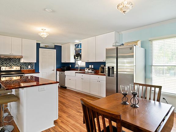 Welcome to your freshly renovated home sweet home located just 9.2 miles from the beaches. This beautiful, manufactured home on .75 acres has all the bells and whistles. Built in 2011, this 3bd/2ba home has a new metal roof, new vinyl flooring, gorgeous butcher block kitchen counters, new kitchen cabinets, stainless steel appliances, and a large farmhouse sink. You'll stay cool in the summer and cozy in the fall with the new a/c and 10-ton heat pump. There are newly installed low-flow toilets in the bathrooms to help conserve water use. Outside the home is truly impressive as well. Your vehicle will stay protected under the anchored carport, and your lawn equipment will fit nicely in the enclosed tool shed. While enjoying the outdoors, check on the fig, peach, pear, lemon, and limes trees on the property or stop to smell the roses.