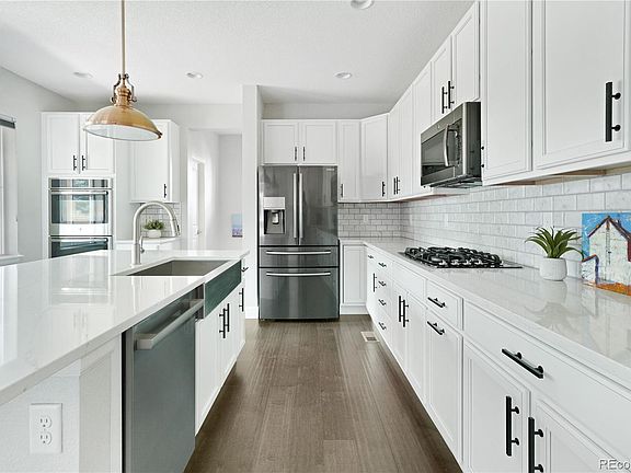 Welcome to a home that blends stylish living with smart design—from the fabulous great room to the light-filled interiors, every detail is thoughtfully crafted for comfort, flexibility, and effortless entertaining. The great room offers the ideal gathering spot with a gas fireplace, while the spacious dining area creates a natural flow for casual meals or entertaining. This kitchen checks all the boxes with a large island with seating, abundant cabinetry, double oven, gas range, Carrara marble backsplash, Quartz counters, and a walk-in pantry. A mudroom off the kitchen and garage keeps daily messes neatly tucked away. The office near the entry provides a quiet, professional setting, and a nearby flex space is perfect for a second office or playful kids’ zone. Upstairs, the primary suite features a soaking tub, walk-in shower, dual vanities, and a custom walk-in closet. Three additional bedrooms and two full baths offer space for family or guests, while the loft makes a great homework or craft nook. The upper-level laundry room adds convenience with a sink, cabinets, and folding space. The basement expands your living area with a huge family room—ideal for movie nights or teen hangouts—and includes a large unfinished area with bath rough-in providing you with room to grow. Enjoy a welcoming front porch for morning coffee and a spacious backyard with a covered patio for evening relaxation and weekend BBQs. The finished three-car garage includes a workbench and storage for cars, toys, and tools. Located in The Gardens at Table Mountain Estates, a fantastic Golden community with a neighborhood pool and open space, just 1 mile from the base of Table Mountain with premier hiking and biking. Also just half a mile from Fairmount Elementary—an award-winning National Blue Ribbon School known for academic excellence.