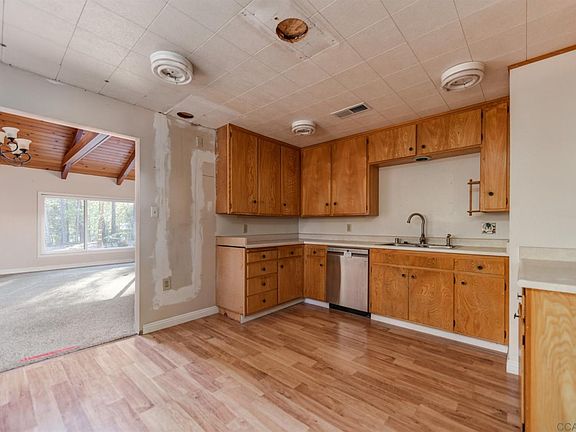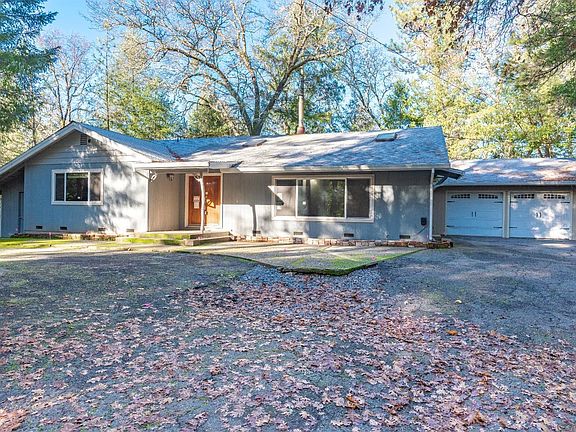 PRICE REDUCED - Privately located 3 bedroom home on over 6 acres. Great floor plan - large living room with open wood beam ceilings. 2 bedrooms have Jack & Jill bathrooms. Bedroom off living room has double doors. Laundry room off kitchen. Large family room/game room with bar & woodstove. Lots of parking. Garage plus workshop area plus area set up to work on vehicles. Lots of potential.