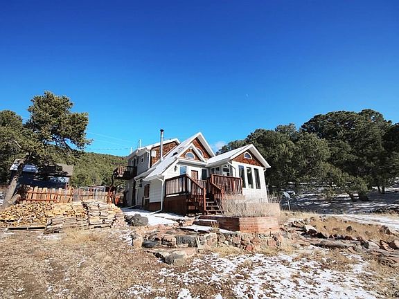 Come fall in love with this gorgeous cottage with incredible views of the Sangre de Cristo Mountains! This home sits on 2.58 acres tucked back into a private and wooded retreat including a fenced backyard, covered bar, garden area and storage shed with a bonus sauna. The inside of the home beams with natural light across the open living space with vaulted ceilings and surrounds a beautiful, crackling wood stove. The kitchen has a convenient layout with plenty of storage inside attractive cherry wood cabinets. The lofted master bedroom is complete with an attached bath, large closet, and even balcony to watch the sunset. 30 miles from Canon City and 12 miles from Westcliffe.