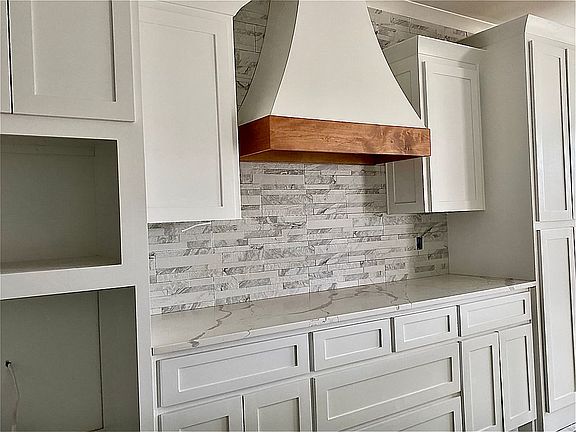 This home has an exceptional layout providing ample space for entertaining, without compromising privacy. This is a 1.5 story home which boasts a large bonus room, bedroom & full bath upstairs. The master bedroom is downstairs, & has a beautiful bathroom with double vanities, zero entry shower, & free standing bathtub. The 170 sf master closet includes 2 built-in chests of drawers, a small island with quartz countertop, & built-in drawers for jewelry. It also includes a bench & coat storage, & a full size mirror. The laundry room is sizable, with quartz countertop, & it leads to the mudroom just off the garage. The kitchen has beautiful quartz countertops with double waterfall island. There is a small coffee/wine bar next to the space for the refrigerator. The sizable pantry includes a quartz countertop, perfect for small appliances & dry food preparation. There is a breakfast area with a breathtaking accent wall that gives it a cozy feel. The dining room is open to the kitchen & has 10' ceilings. The modern fireplace in the living room is decked out in beautiful floor to ceiling tile, & includes a natural wood mantle. The dining room includes a fabulous accent wall & is perfect for dinner parties. It has enough delineation to separate it from the other rooms, while still feeling connected. The entry of this home includes a sensational custom,natural wood door leading into the home. There are two guest bedrooms on the first floor, opposite side of the house from the master suite. The full guest bath has a quartz countertop. There is a cozy porch on the back of the house which includes ceiling fan, lights, electrical outlets. There is a built-in storage room on the far left back of the house, which is perfect for housing lawn equipment and other household items. This high end home is beautiful, highly functional, & you are sure to fall in love with it.