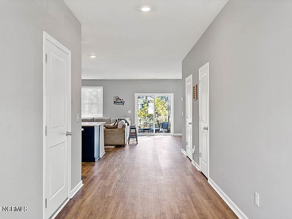 Welcome to The Townes at Lewis Creek! The Palmer Floor plan offers a large Master Bedroom that covers the back half of the upstairs, spacious walk-in-closet and dual vanity sinks . You will find the remaining two bedrooms upstairs as well. Nice big hallway with plenty of storage along with second full bathroom. Enjoy entertaining guest with a large quartz island in the kitchen that is open to the living area. Features include quartz kitchen countertops, RCB vinyl plank floors, stain resistant carpets in the bedrooms, Stainless Steel Kitchen Appliances such as microwave, dishwasher, and electric stove range, technology package and fridge! Seller also included blinds throughout the entire house along with a brand new washer and dryer that convey! These homes also come with garage parking. In this community comes lots of visitor parking, walk trails and landscaping included in your very affordable HOA. This HOA will also include your Master Insurance policy. Make your appointment before it is too late! These two-story townhomes are conveniently located within 15 minutes to Downtown Wilmington, Wrightsville Beach, and a half a mile away from accessing I-40 North. Fencing of your back patio is now also allowed. Home can be sold fully furnished for additional cost if wanted.
