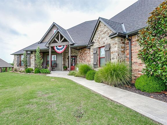 Open Sunday 2-4pm! Your ultimate home search ends here, this one checks ALL the boxes! 1538 High Ridge Drive is nestled on 1 manicured acre (MOL) in the premier Walnut Creek Estates of Blanchard, located across from the private fishing pond & pavilion. This immaculate custom home is one of a kind & exceeds all expectations. Showcasing 2972 sq ft of refined living space, boasting 3 spacious beds, study, 2.5 baths & 500 sqft bonus room. Professional landscaping & idealic curb appeal welcome your guests on the dreamy front porch! Upon entering you will be wowed by the views from the grand living room featuring a gorgeous rock fireplace, stunning floor to ceiling windows w/ natural lighting & 20ft ceiling. Elevate your culinary creations in the spectacular kitchen, featuring stainless steel appliances, leathered granite & farm sink. Enjoy the craftsman center island w/ Acacia butcher block, abundant storage, custom shelves & a walk-in pantry. Don’t forget the breakfast bar, overhead lighting in display cabinets & the additional designer details allow you to maximize your kitchen storage! Indulge in luxury & unwind in the spacious primary suite featuring 15’ ceilings & connecting ensuite. You’ll appreciate the claw foot bath tub, walk in shower & generous storage. The expansive primary closet conveniently connects to laundry room. Both additional beds are well appointed w/ walk in closets & located on either side of the secondary bath. The spacious bonus room upstairs is ideal for an oversized bedroom suite, play area, hobby room, home theater or home gym. The opportunities are endless, create a versatile space in the home of your dreams! Unwind after a long day on the covered back porch w/ cedar privacy wall & soak in the views of Oklahoma’s legendary sunsets in your own backyard! The 3 car garage is oversized w/ additional work shop space! You will love everything this quaint addition has to offer! Make your appointment today & experience the pinnacle of luxury living!
