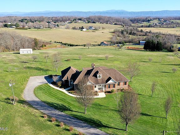 Expansive views of the Smoky Mountains are breathtaking from this stately brick home on nearly 8 acres! First time on the market, this custom-built estate incorporates spacious rooms with 9' ceilings, wood windows, solid wood doors and conditioned sunporch to appreciate the views. Open living room has mountain views and double doors to the sunroom; the wood fireplace could easily be converted back to gas. The well-designed kitchen has wood cabinets, double ovens, granite and island cooktop. Master bedroom is on the main with generous ensuite and the second bedroom on the main, currently used as an office, has a full bath and double doors. Bedrooms 3 and 4 upstairs have a jack-and-jill bath with double vanities. Detached 768 sq ft garage/workshop is conditioned w/ 240v plug and water.